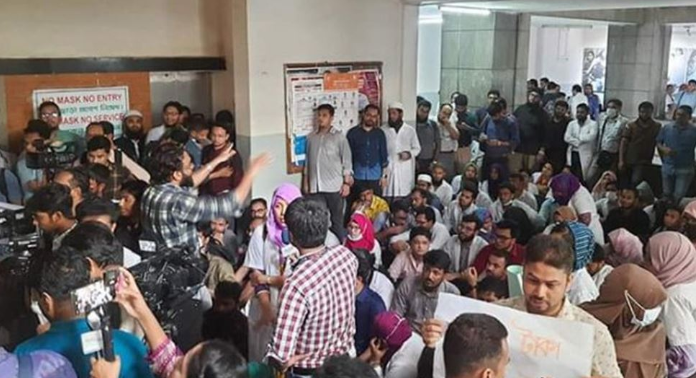 বঙ্গবন্ধু শেখ মুজিব মেডিকেল বিশ্ববিদ্যালয়ের উপাচার্য অধ্যাপক ডা. মো. শারফুদ্দিন আহমেদকে তার কার্যালয়ে অবরুদ্ধ করে রেখেছেন বিশ্ববিদ্যালয়টির কর্মচারীরা।