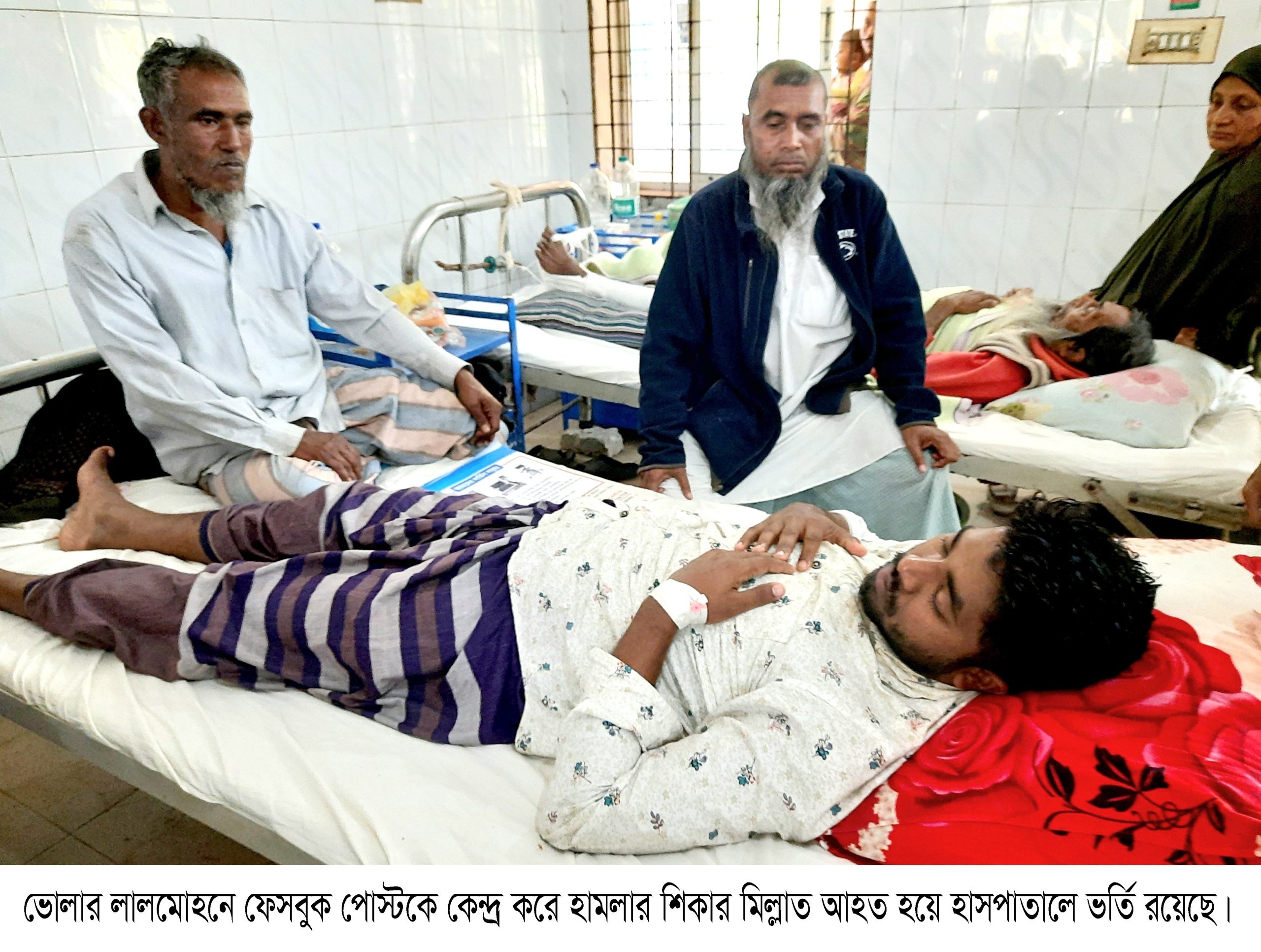 ভোলা প্রতিনিধি: ভোলার লালমোহন উপজেলায় ফেসবুক পোস্ট দেয়াকে কেন্দ্র করে মো. মিল্লাত হোসেন নামের এক যুবককে পিটিয়ে মোবাইল ও টাকা ছিনতাইয়ের অভিযোগ ওঠেছে ধলিগৌরনগর ইউনিয়ন ছাত্রলীগ সভাপতি মো. শাকিল খানের বিরুদ্ধে। আহত মিল্লাত হোসেন উপজেলার চরভুতা ইউনিয়নের ৬নম্বর ওয়ার্ডের চর লেঙ্গুটিয়া গ্রামের মো. নুরে আলমের ছেলে ও ঢাকায় বিবিএস ক্যাবলস-এ ডেলিভারি ম্যান হিসেবে কাজ করেন। সে বর্তমানে ভোলা সদর হাসপাতালে ভর্তি রয়েছেন।