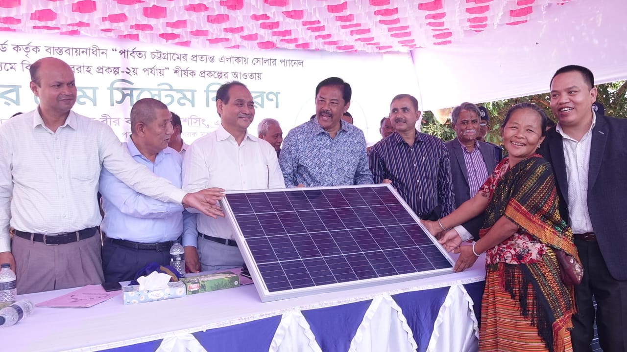 পার্বত্য মন্ত্রী বীর বাহাদুর বলেন, প্রথম পর্যায়ে বিদ্যুতের আলো বঞ্চিত ১১ হাজার পরিবারকে সোলার হোম সিস্টেম বিতরণ ও স্থাপন করা হয়েছে। দ্বিতীয় পর্যায়ে আরও ৩১ হাজার সোলার হোম প্যানেল বিতরণ করা হয়েছে। অবশিষ্ট ৯ হাজার সোলার হোম সিস্টেম চলতি বছরের মধ্যে বিতরণ ও স্থাপন প্রদান কাজ শেষ হবে। মন্ত্রী বলেন, এই সোলার প্যানেল সঠিকভাবে ব্যবহার করলে অন্তত ২০ বছর পর্যন্ত প্রত্যেকটি পরিবার বিনামূল্যে বিদ্যুতের আলো, ফ্যান ও মোবাইল চার্জারের সুবিধা পাবেন। মন্ত্রী বলেন, উপকারভোগীদের সোলার প্যানেলের ব্যবহারবিধি ভালোভাবে জানার জন্য প্রশিক্ষণের ব্যবস্থা রয়েছে। প্রশিক্ষণ গ্রহণকারী প্রত্যেক উপকারভোগীকে নগদ আরো ৬৫০ টাকা করে দেওয়া হবে বলে জানান পার্বত্য মন্ত্রী।