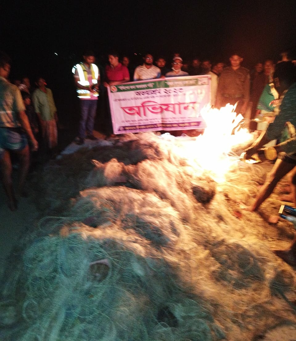 উপজেলা মৎস্য অফিসার আমির হোসেন জানান, মার্চ -এপ্রিল দুই মাসের মাছ ধরার নিষেধাজ্ঞা অমান্য করায় মঙ্গলবার দিবাগত রাতে তজুমদ্দিনের মেঘনা নদী থেকে ১২ জেলেকে ৭টি মাছ ধরার নৌকা-জালসহ আটক করা হয়। পরে শশীগঞ্জ স্লুইজঘাটে এনে রাতে জাল আগুনে পুড়িয়ে ধ্বংস করে দেওয়া হয়। নৌকাগুলো জব্দ করে হেফাজতে রাখা হয়েছে। ভ্রাম্যমাণ আদালতের মাধ্যমে ৭ জেলেকে জরিমানা ও ৫ জন অপ্রাপ্ত বয়স্ক হওয়ায় মুচলেকা নিয়ে ছেড়ে দেয়া হয়েছে। এর আগেও ১টি নৌকা জালসহ ৫ জনকে আটক করা হয়েছিল। এ পর্যন্ত ১০ জেলে কাছ থেকে ৩৮ হাজার টাকা জরিমানা আদায় করা হয়েছে। মোট ১০টি নৌকা জব্দ করে হেফাজতে রাখা হয়েছে।