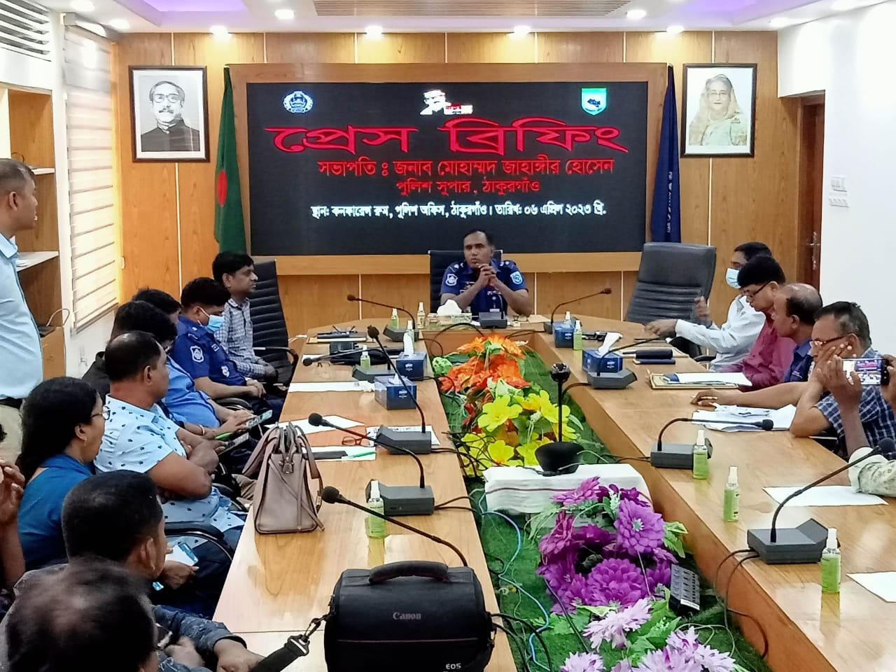 এ সময় উপস্থিত ছিলেন, ঠাকুরগাঁও পুলিশ সুপার মোহাম্মদ জাহাঙ্গীর হোসেন, সদর থানার অফিসার ইনচার্জ কামাল হোসেন, অফিসার ইনচার্জ ওসি ডিবি আনোয়ারুল ইসলাম, ওসি ডিএসবি আব্দুল মতিন প্রধানসহ জেলার বিভিন্ন প্রিন্ট ও ইলেকট্রনিক মিডিয়ার সংবাদকর্মীবৃন্দ।